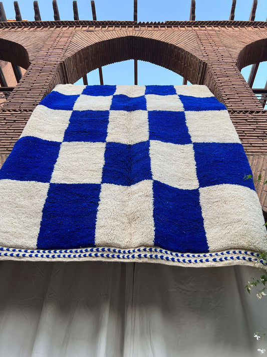 Nautisches Schach - Handgefertigter blau-weißer marokkanischer Teppich