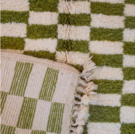 Rabat Schachbrett - handgefertigter grüner marokkanischer Teppich