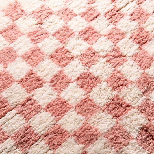Marrakech Kariert - Handgefertigter Rosa Marokkanischer Teppich
