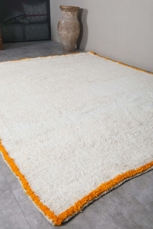 Citrus Edge - Tapis en laine marocain fait main - Orange et blanc